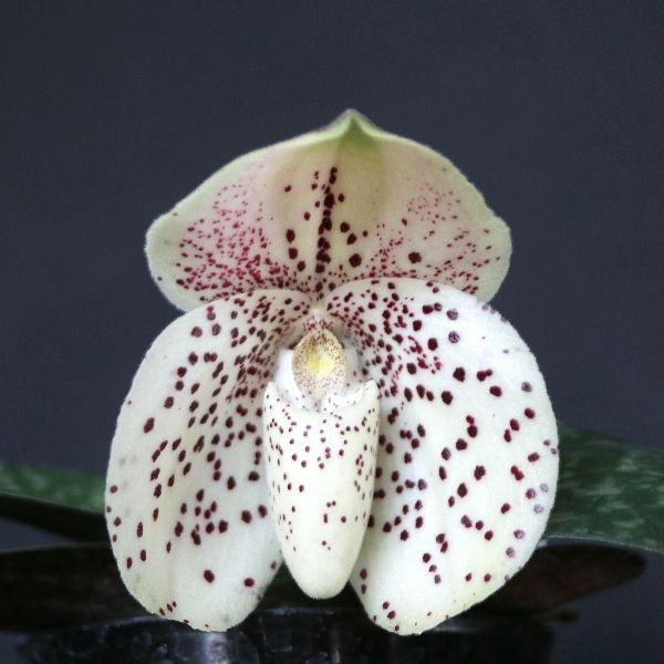 | パフィオ ハンシェンタンゴ Paph.Hung Sheng Tango (leucochilum×anium) 実生苗の初花 花径11cm |