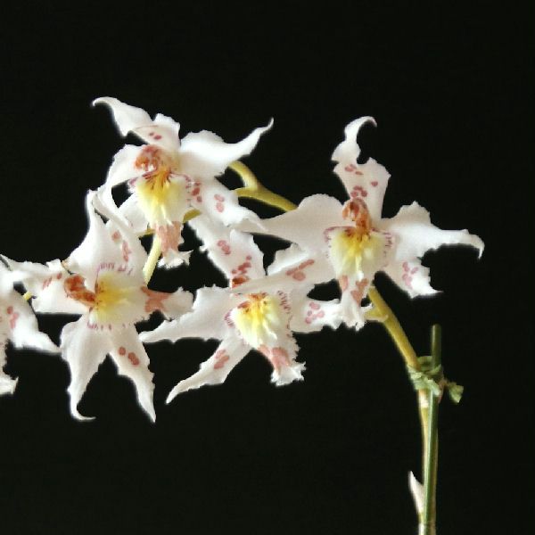 | オドンチオダ フローズンアップル Oda. Enzan Starlit 'Frozen Apple' 園芸店で購入(向山蘭園の苗) 原種クリスパムの特徴が良く残っている 花径は5~6cm |